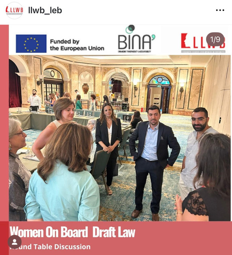 LLWB aimed to advocate for the Women on Board Law through a project implemented under the BINA’ sub-grants, funded by the European Union (EU) and managed by Transparency International Secretariat and Transparency International Lebanon (TILB). The project, which began in September 2023 for a duration of one year, included several activities: